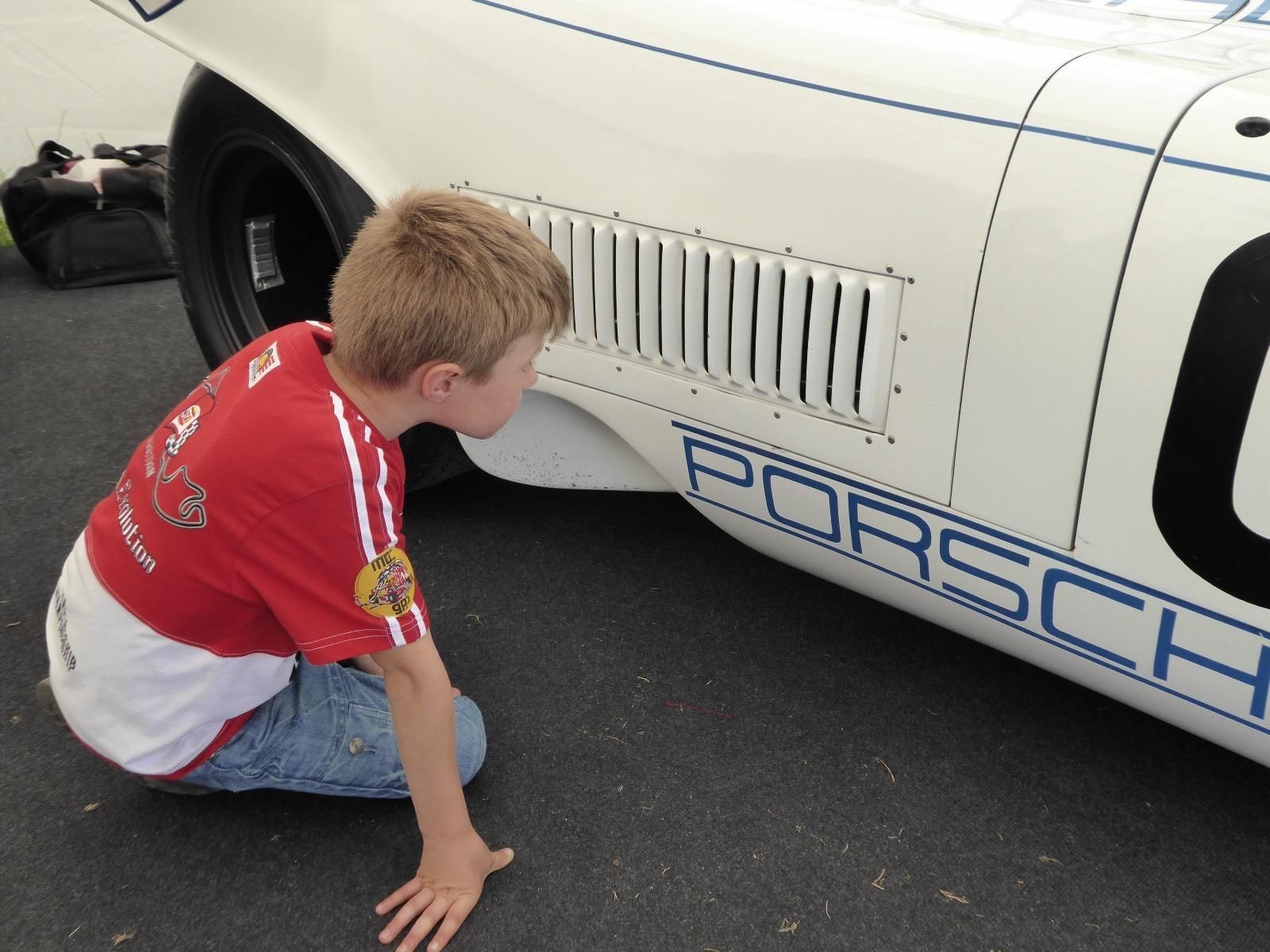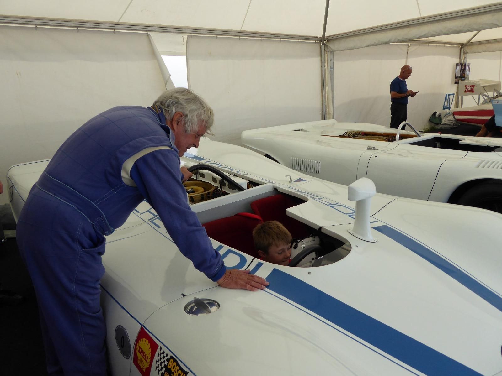 A very young Oscar (and a younger looking Ed! ) meeting his GREAT UNCLE BRIAN for the very first time at the Goodwood festival of speed! Inspecting a very famous Porsche racing car. There was never any doubt that the spark would continue into the future!
